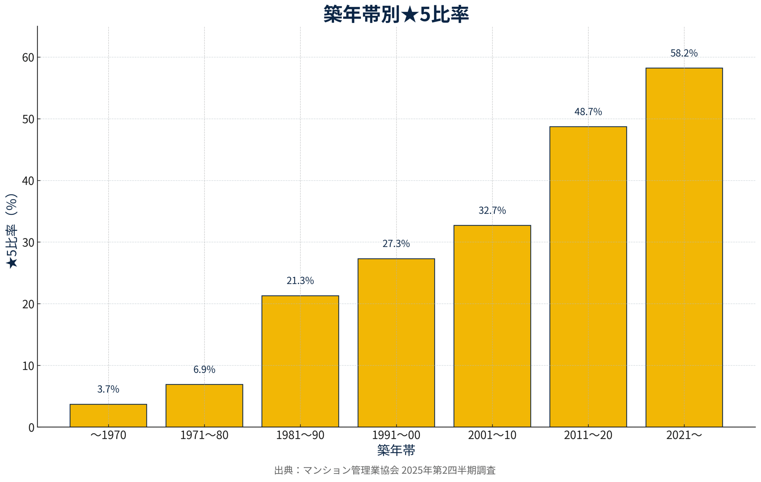 第二に、「築古だから★5は無理」という思い込みです。1970年代竣工群でも★5が6.9%存在し、築年は絶対条件ではありません。修繕履歴の整備、長期修繕計画のアップデート、規約の現代化、修繕積立金の基準額達成。これらを丁寧に積み上げれば、築年のハンディを超えて上位評価に到達できます。