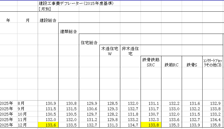 ※引用:国土交通省 建設工事費デフレーター 統計表月次資料より抜粋