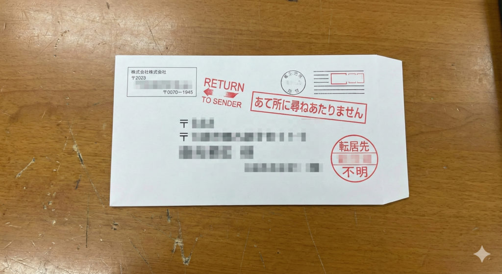 重要ポイント: ※この「戻ってきた郵便物(封筒)」は、所在不明であることを裏付ける最も有力な資料です。絶対に捨てずに持参してください。